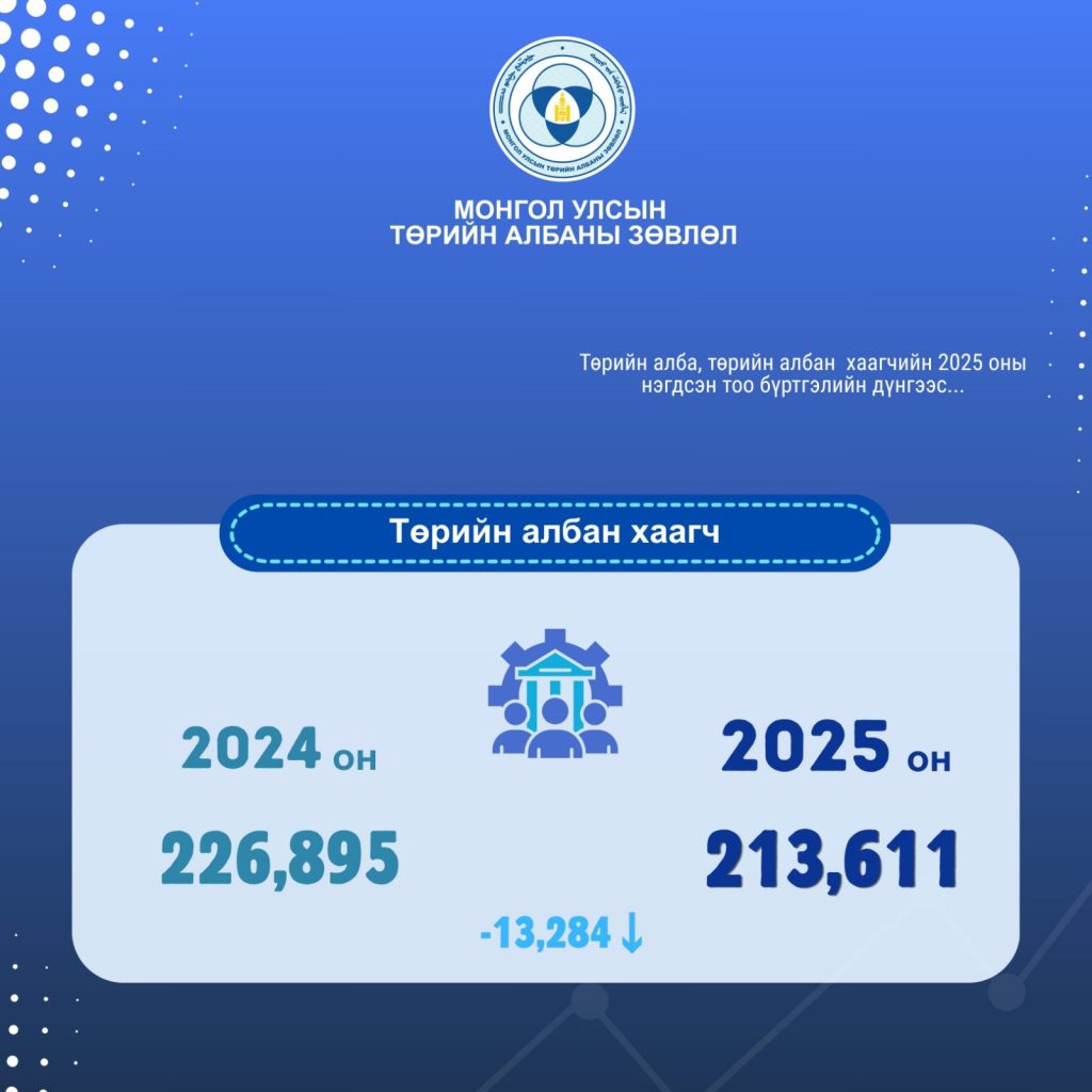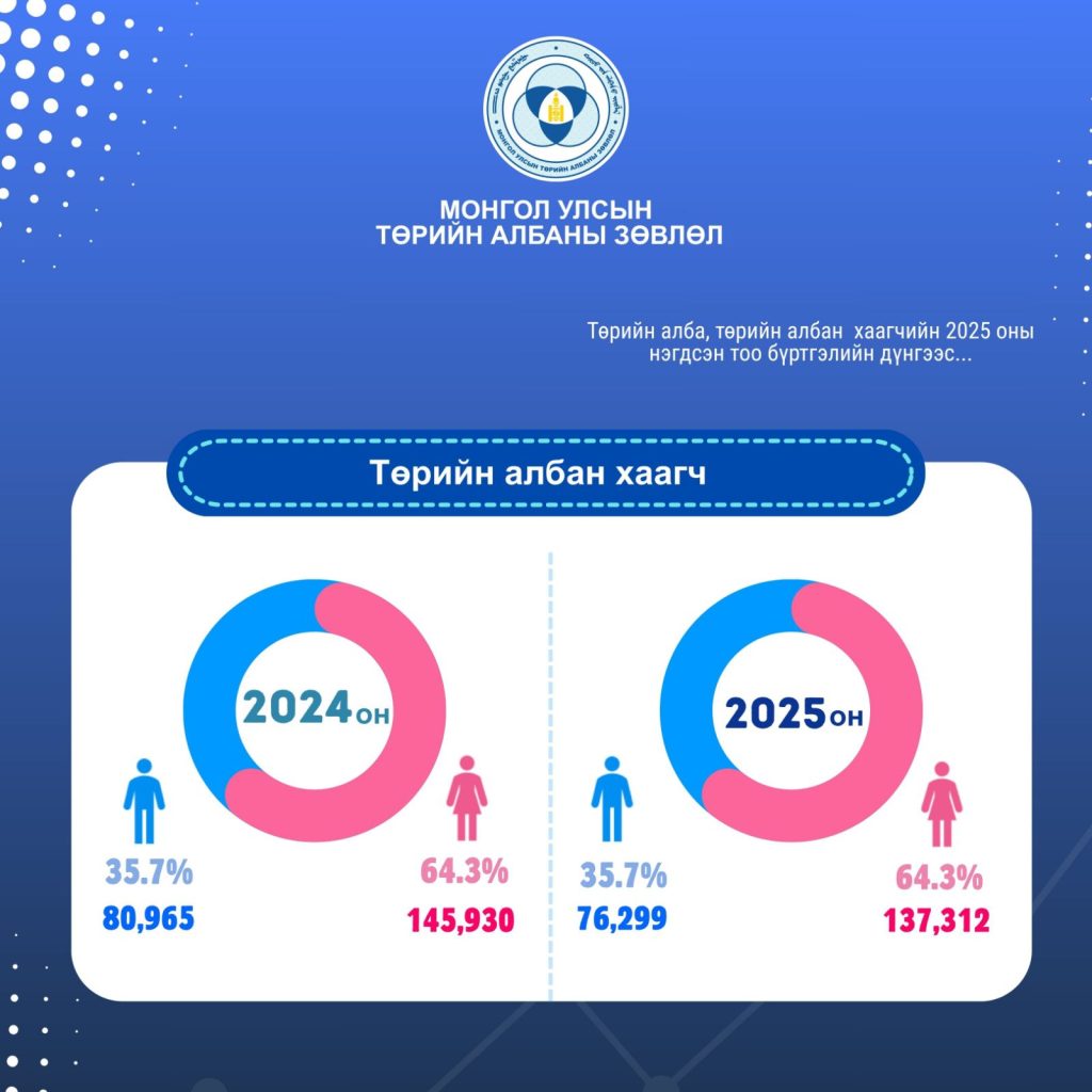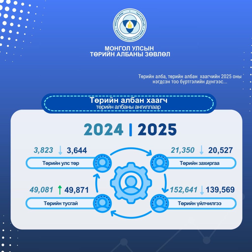 Төрийн алба, төрийн албан хаагчийн 2025 оны нэгдсэн тоо бүртгэлийн тайлангаас танилцуулж байна.